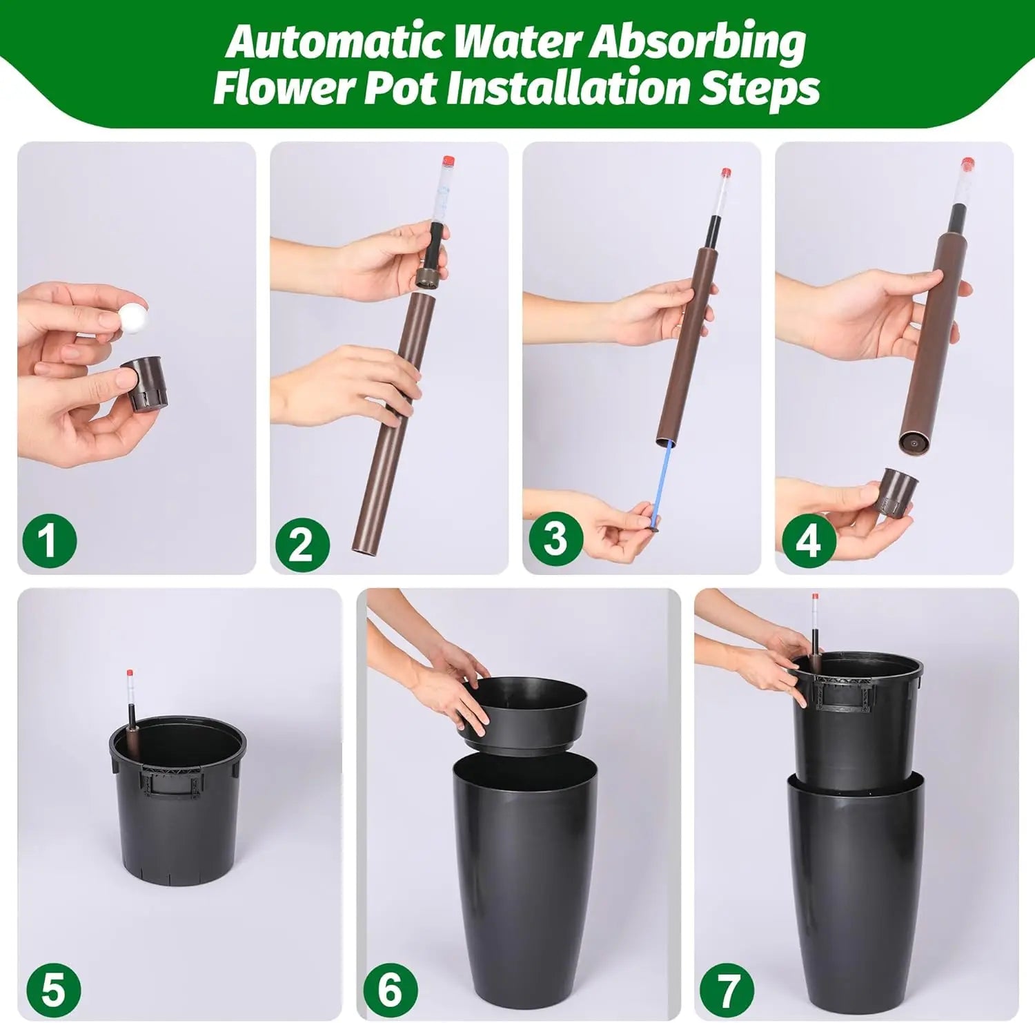 16" or 22" Tall Self Watering Plant Pot Set with Built-In Drainage