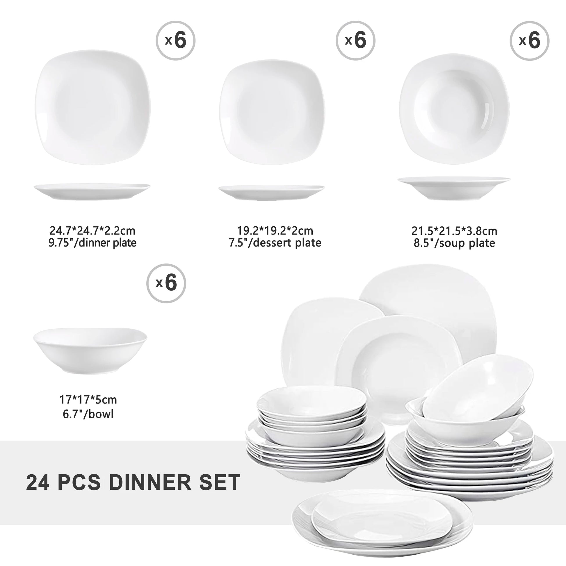 24-Piece Ceramic Porcelain Tableware Dinner Set