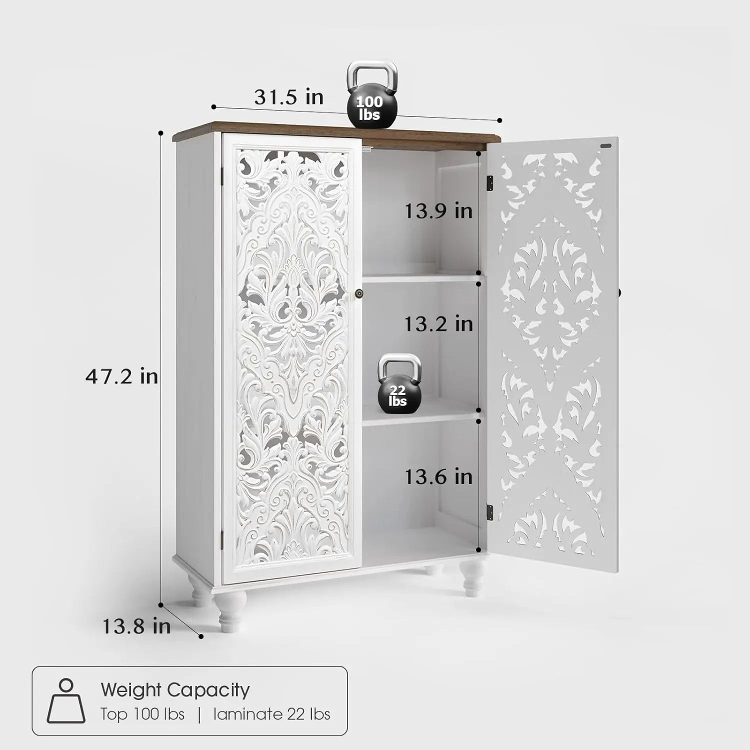 Versatile multi-functional design: With its versatile, bold design, this cabinet for storage with doors complements any décor—from farmhouse and French country to eclectic styles. Whether you use it as an entryway cabinet in the hallway, a buffet table in the dining romm, a living room cabinet, or a bedroom storage cabinet, this white cabinet will seamlessly integrate into your home.