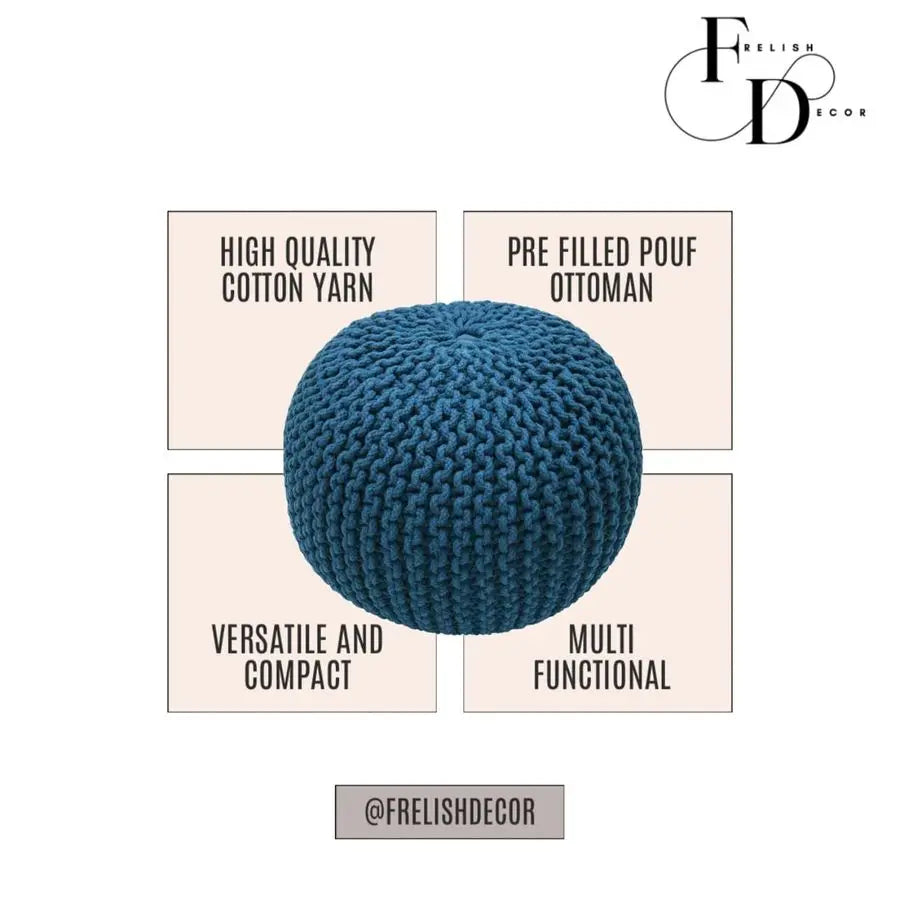 Round Pouf Ottoman, Hand Knitted 100 Cotton Foot Stool